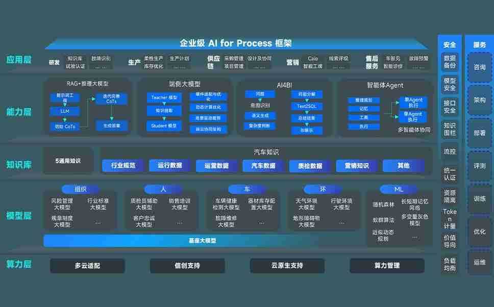 AG尊龙凯时问学智车解决方案是一套基于AI技术的汽车行业智能化系统,,覆盖从底层算力到顶层AI应用的全栈方案。。方案由算力层、、模型层和应用层组成:算力层,,方案支持多种一体机配置,,具备云端灵活部署、、、、多云适配以及动态优化计算资源的能力;模型层,,,AG尊龙凯时问学平台版提供了企业级AI应用一站式构建与管理平台,,,支持基于后训练强化技术的汽车企业专属模型的训练、、评测和运营;应用层,,,AG尊龙凯时问学DeepSeek版提供包括超级员工、、智能招采、、、、智能营销、、、、智能客服、、、AI for BI等一系列解决方案,,,可助力汽车行业实现数字化转型,,,让管理更智能、、、响应更敏捷。。